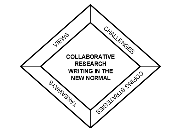 The new normal setup of education, which is highly reliant on online and distance learning, posed challenges especially in subjects or courses that require intensive collaboration among learners. In the Philippine Basic Education Curriculum, Grade 12 senior high school (SHS), students are required to accomplish a full-blown research paper in their Inquiries, Investigations, and Immersion class. Research, as a form of academic writing, follows strict processes, rules, and conventions. Given its complexity, Roxas (2020) argued that academic writing at advanced levels is challenging and difficult, more so with SHS students. Thus, teachers utilised various strategies to address the difficulties relative to the demanding and laborious nature of research writing. For instance, research outputs in senior high school are most commonly done collaboratively. Collaborative writing further augments the knowledge bases of the learners as they tap into their peers’ writing skills (Swain & Lapkin, 2001). In consonance, Torres (2020) emphasised that collaborative academic writing is beneficial for students as they can gain insights from their peers, which somehow lessens the burden of accomplishing the specific task. Storch (2011) suggested that collaborative writing can combine the merits of learner-to-learner interaction with the processes of writing, such as “testing hypotheses, receiving and noticing feedback, and focusing on accuracy” (p. 276). Montero, (2005) also averred that collaborative writing is a highly motivating learning experience for students, as well as a creative pedagogical tool for teachers. Writing collaboratively also encourages individual participation, increases self-confidence, and, most importantly, improves productivity. In other words, collaborative writing enables the generating and solidifying of shared knowledge (Wigglesworth & Storch, 2012) as learners craft their writing pieces in cooperation with other students (Kormos et al., 2014; Storch, 2011). However, despite the cited advantages, several challenges still confront learners, which may affect the quality of their output, such as working with group members who are uncooperative or those with conflicting personalities (Torres, 2020). It can be noted that collaboration per se is already a challenge for the learners in face-to-face classes but more so in the context of online distance learning, which is a relatively new practice. Additionally, Tutty and Klein (2008) noted that students who were in face-to-face collaboration found it easier to share information than in the virtual collaboration, Therefore, this study aimed at exploring the views, challenges, and takeaways of senior high school students in collaborative research writing in the context of the ‘new normal.