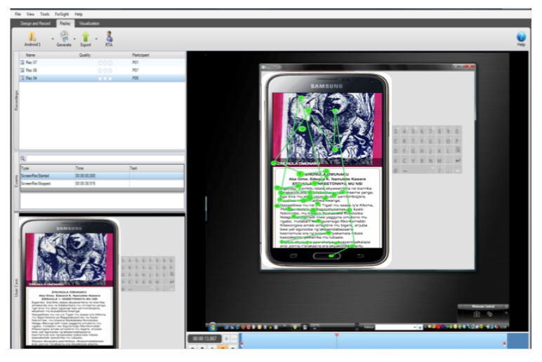 According to Reeves (2006), the last phase of DBR is that of making reflections and conclusions purposed at producing instructional design or pedagogical principles and implications. In this section, we make a recap of reflective observations, which the teacher-trainees made about their active experimentation of Tobii-T120 to track the eye-movements of students who were reading and engaging with learning objects on mobile phones: