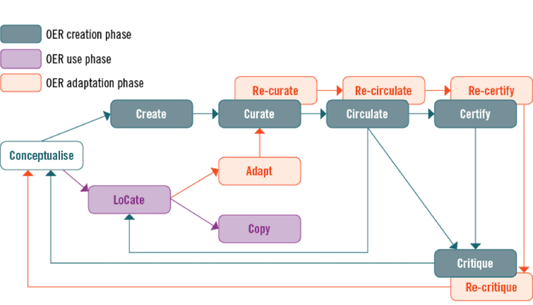 In the ROER4D meta-synthesis, an “optimal” Open Education cycle (Figure 1) was used to identify the key OEP that underlie the phases of OER creation, use and adaptation (Hodgkinson-Williams et al., 2017, p. 32).