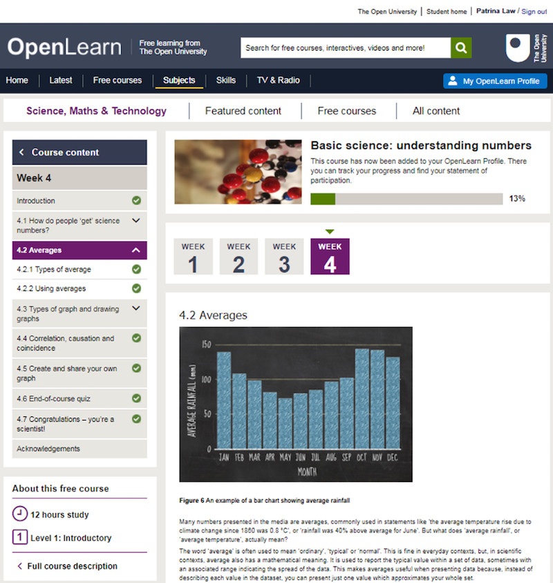 In addition, the layout of OpenLearn courses was redesigned to mimic that of the formal student VLE in order to provide a more seamless online learning experience for students moving between their formal module website (VLE) and OpenLearn (Figure 1).