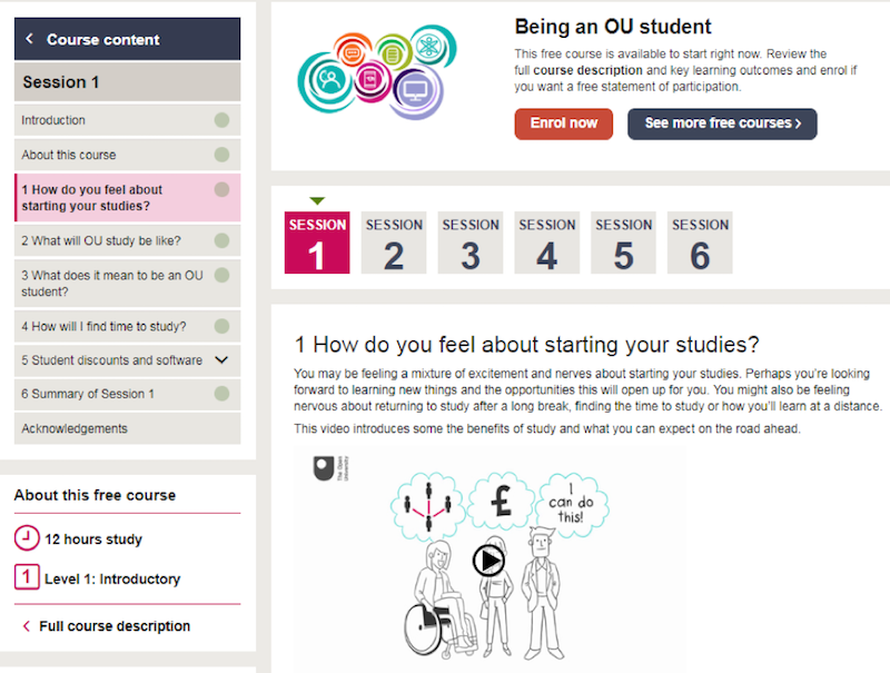 Figure 2. Session 1 of Being an OU student, the undergraduate induction course