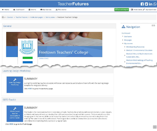 Figure 1: Freetown Teachers' College Page on the TeacherFutures Platform showing list of courses