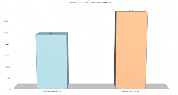 Figure 2: Number of students utilising Lecturio pre and during COVID 19 period