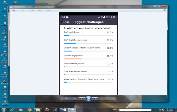 The COVID-19 epidemic has forced education managers and teachers to begin or enhance the e-learning mode of education across the world. Kenya has not been left behind. This article is geared towards identification of challenges that face technologically based / supported education. Firstly, is the accessibility question. Availability of ICT systems and devices is limited for most learners, teachers, and parents due to their socio-economic status. Even for cases where gadgets and platforms are available, the drive and preference of the owners of devices / systems towards their use for education is not guaranteed. There is also a question of the digital divide, since most Kenyan parents and schools do not have Internet access or smart phones, even though they may have a mobile device. Secondly, is the issue of pedagogy – this implies practice and methodology that best fit the teaching of youthful students. Use of technologies in teaching should be done in a professional way by adhering to how instructional materials are prepared, dissemination of the same materials and then fusing them with technology for effective teaching and learning. There are few programmes that address this aspect in a professional way in Africa. The screenshot below is an indication of factors that may hinder e-learning education. It was taken from the online training of Machakos University tutors. A survey was done where the participants indicated challenges that they may face in their teaching. Clearly, students’ readiness to engage, pedagogy and access were their main concerns as shown from the percentages rated for each challenge.