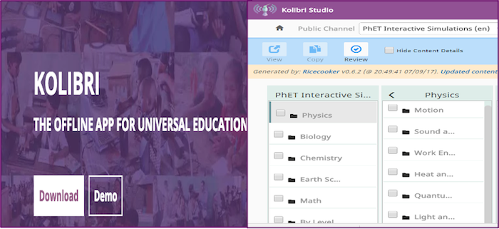 Figure 1: A remixed screenshot showing Kolibri as an offline learning platform for education