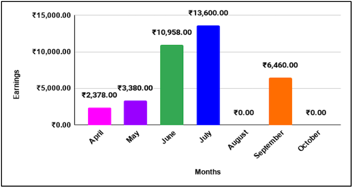 Project: On WorkNHire.com. First earning — INR 320. Project — Blog writing.