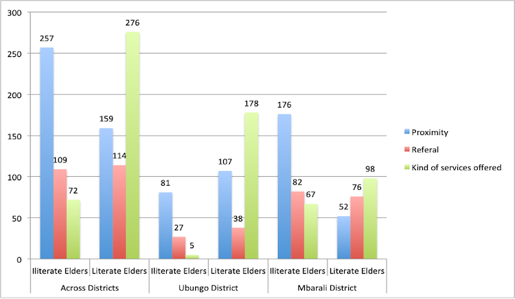 The findings show that the illiterate elderly’s choice of health services is largely influenced by the proximity of health facilities to their homes. However, literate elderly are more likely to choose health facilities based on the service offered (see Figure 2). “I did not go the district hospital in spite of being referred there, I cannot afford the travel cost”.