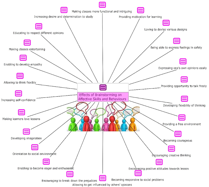 Enabling improved thought and developing imagination are also reported to be contributions that use of brainstorming may make to the cognitive domain of learning. According to Vygotsky (2004), creative activity is closely associated with imagination, and thus creative imagination is the ability to compound already existing elements and present them in different ways. An increase in desire and determination to ponder over a presented problem case with the collaborative and cooperative power of group work or a brainstorming session is thought to vitalise the creative imagination. It is further thought that the rule proposed by Alex Osborn (1953), the mastermind of the brainstorming concept, about not criticising ideas while they are being generated prepares a convenient platform for unleashing imagination and good resulting ideas. This fact is reiterated by other researchers (Tsai, 2013) as, “the brainstorming technique attempts to give free reign to imagination for the sake of evoking ideas and to encourage participants to express their thoughts without judgment”. An outstanding code that was formed around the affective contributions of brainstorming interventions in an educational context is that it could create an activated positive mood, which is found to be associated with higher levels of creativity in a meta-analysis by Baas et al (2008).