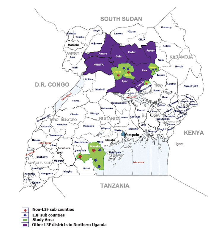 In Uganda, the L3F program was launched during 2009-2010 to test the efficacy of the L3F model in the Kabale district of Uganda. At that time, the program focused on sorghum and potato growers belonging to Bakiga communities in selected villages of Kabale, and on the Batwa community, whose main economic activity was honey collection from wild forests in Kisoro (Carr et al, 2015). This was meant to enable a social inclusion that would ground the model in the local context. The communities were mobilised, and organised into Self-Help Groups (SHGs) and SACCOs. Various stakeholders were involved for capacity building, technical support and systems management. These included Makerere University, District Local Governments in Kabale and Kisoro (KDLG), the Ministry of Agriculture, Animal Industry and Fisheries (MAAIF), the National Agricultural Research Organisation (NARO) and the rural farmers as primary stakeholders, among others.