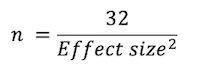 Lehr, R. (1992). Sixteen S-squared over D-squared: A relation for crude sample size estimates. Statistics in Medicine, 11, 1099-1102.