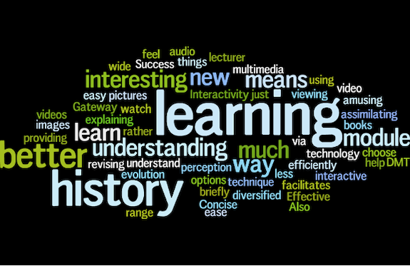 In view of providing adequate e-learning content and pedagogies to students and as a way to address the concerns raised by the module instructor, the curricular content of HIST1002Y was enhanced through the provision of multimedia content in the form of interactive multimedia CDs and interactive quizzes. Some documentary films were also screened during the face-to-face lecture sessions. Additionally, a multimodal assessment involving students as producers of their own DMT in the form of a history-related documentary video was explored.