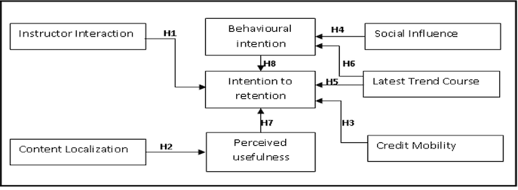 H7: Behavioural intention of using MOOCs will have significant positive effects on learners’ retention in MOOCs.