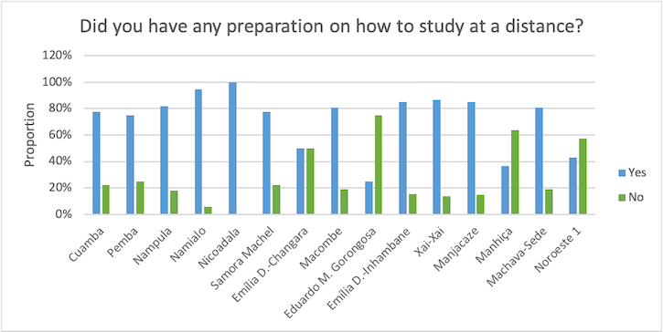 Figure 1: Percentage of students who had preparation on how to study at a distance per school