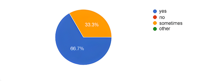 Figure 7 indicates the personal data of teaching and academic staff who took part in the survey during COVID-19 in 2020 about the possibility of remote studying given the city, region or village they live: yes — 66.7%, no — 33.3%.