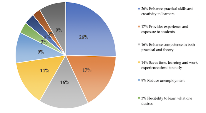 Contrary to what respondents of this study worry about work-based learning having limited application and low quality, Sweet (2018) reported that work-based programmes make study more interesting and connect students to the real world of jobs. Since students are given more relevant work skills, work-based programmes expand employment opportunities to students. There is also a possibility of graduates being employed in the firm where they trained immediately after completing their studies, which is an added advantage.