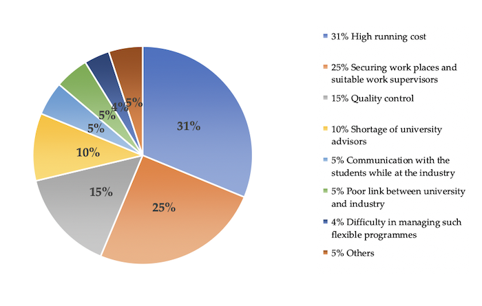 Engineering and technology programmes often require universities to possess equipment and machinery for training purposes. The equipment is usually very expensive, making it difficult for universities to keep up with technological changes. Sweet (2018) has shown that work-based programmes can allow universities to offer training using employers’ equipment, therefore, reducing the need to purchase expensive equipment. Work-based learning may not necessarily reduce training costs to universities but, rather, introduce a new form of cost sharing where universities use equipment in the industry to train students.
