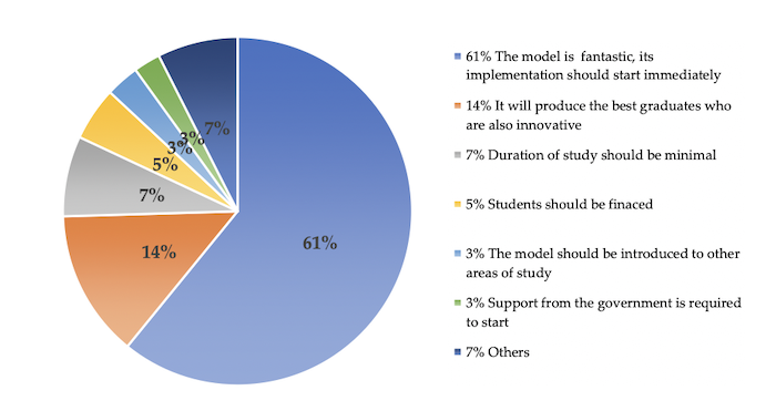 Prospective students had a lot to say in general about the model. However, as indicated in Figure 7, most of them thought that the model was good and should be implemented immediately.