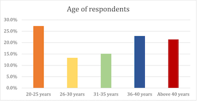 The 368 survey questionnaires were distributed to secondary school educators around Mauritius. However, only 271 were returned and were used for analysis. The questions in the survey were formulated such that they addressed the research objectives of the study. The educators were selected based on qualifications, knowledge, and experience in IT for delivery of classes. The educators with experience in IT were those who held a qualification in IT-related fields, that could confirm their expertise in IT. Their knowledge in IT was related to their use of IT tools in their teaching practice. Based on the number of questionnaires that was administered, the response rate was 73.6%, which was satisfactory. The remaining 26% non-response rate was mainly attributed to time constraint, lack of knowledge on OER and lack of interest. However, 271 survey responses from the educators, which represented 73.6%, were acquainted with and knowledgeable about OER. In terms of gender distribution, it can be found that the larger share of the respondents in the surveyed sample were female teachers, amounting to a figure of 51.3%, while 48.7% constituted male teachers, as shown in Figure 3. Among the respondents who participated in the survey, it can be observed that most of them belonged to the age group of 20-25 years (27.3%), followed by 22.9% who were aged between 36-40 years, 21.4% for the age group above 40 years,15.1% for the age group 31-35 years and 13.3% were 26-30 years, as illustrated in Figure 4. Figure 5 shows that the highest number of years of experience of the educators were from 11-15 years, with a percentage of 29.9 %, while 28.8 % represent educators with experience from 5-10 years. The least amount of experience was above 15 years, representing 16.2% of the sample.