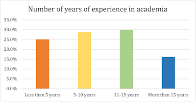 The participants also counted different number of years of experience in teaching, that can be represented as follows: